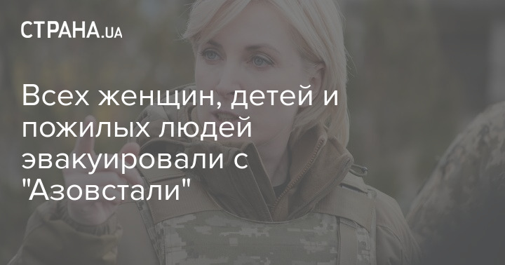Всех женщин, детей и стариков эвакуировали с "Азовстали". Об этом сообщила вице-премьер Ирина Верещук.