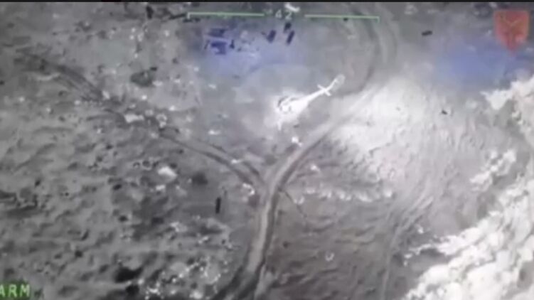 Украина показала удар по российскому вертолету на острове Змеиный. Скриншот из видео