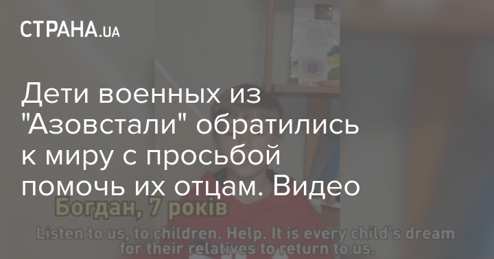 Дети в возрасте от 4 до 11 лет находящихся забаррикадированными на "Азовстали" военных из полка "Азов" призвали мировое сообщество помочь освободить пленных.