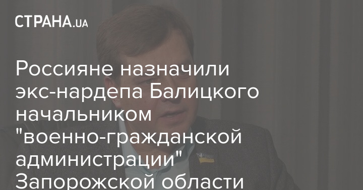 Россияне назначили депутата Запорожского облсовета и экс-нардепа Евгения Балицкого начальником "военно-гражданской администрации" Запорожской области.