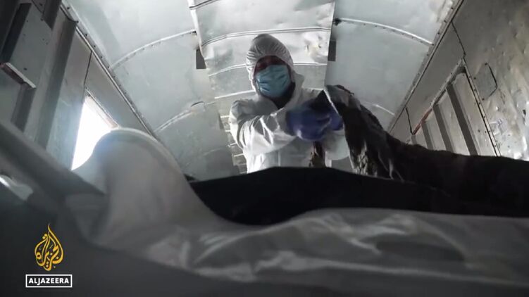 Катарский телеканал "Аль-Джазира" в репортаже показал вагон-рефрижератор в Киевской области, заполненный, как утверждается, телами российских военных, погибших в Украине.