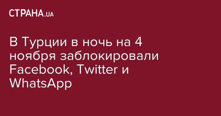 В ночь на 4 ноября провайдеры в Турции начали блокировку социальных сетей и мессенджеров, в частности, Facebook, Twitter, Youtube и мессенджера WhatsApp, сообщает проект Turkey Blocks.