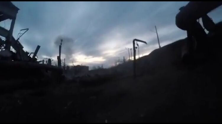 В ролике члены "Азова" ведут стрельбу по противнику среди руин завода.