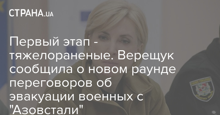 "Мы начали новый раунд переговоров вокруг дорожной карты спецоперации. Начинаем с тяжелораненых. Есть Красный Крест, они сегодня встречаются с россиянами. Провели с ними (МККК), а также с ООН, переговоры и дали им мандат. Мы хотим, чтобы был подписан документ, как именно будет происходить эвакуация с "Азовстали", готовимся к подписанию", – объяснила Ирина Верещук.
