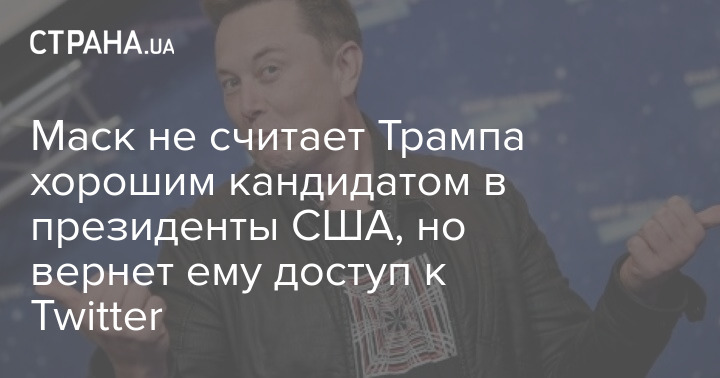 Маск не считает Трампа хорошим кандидатом в президенты США, но вернет ему доступ к Twitter