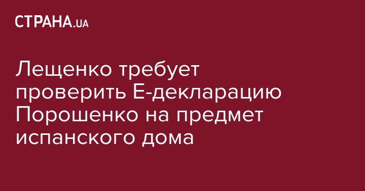 Ранее Лещенко заявил, что Порошенко в своей электронной декларации не указал недвижимость в Испании и произведения искусства, которые есть у него в собственности, и пообещал направить соответствующий депутатский запрос. По данным  СМИ  - у Порошенко есть вилла в испанском городе Марбелья, которая была куплена им еще до вступления на пост главы государства. Позже в Администрации президента подтвердили факт визита Порошенко в Испанию в частном порядке.