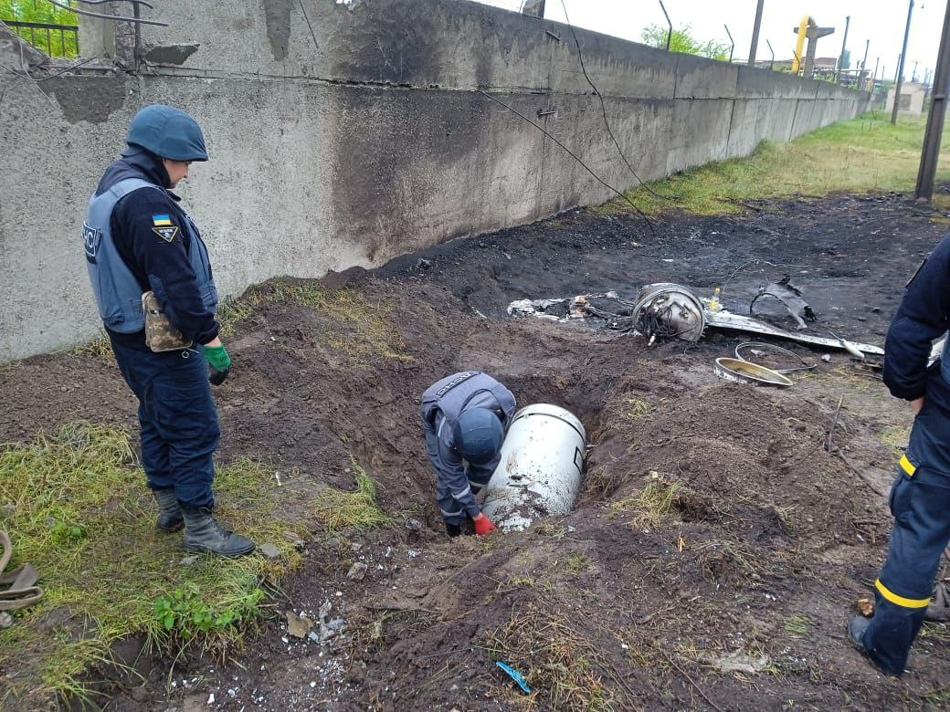 "Смертоносная ракета весом почти в 500 килограммов упала в городе близ жилого сектора, во время очередного вражеского обстрела российскими оккупантами. Для обеспечения противопожарной безопасности при обезвреживании взрывоопасного предмета привлекались 10 человек личного состава и 5 единиц техники ГСЧС. 14 мая в 13:10 остатки ракеты обезврежены путем подрыва на специальном полигоне вдали от населенных пунктов", - говорится в сообщении ГСЧС.