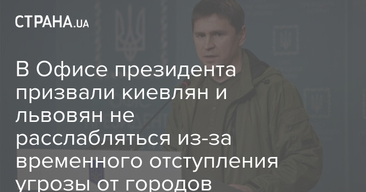 Советник главы Офиса президента Украины Михаил Подоляк призвал киевлян и львовян быть более мобилизованными в нынешней ситуации, когда война вроде бы отступила от городов.