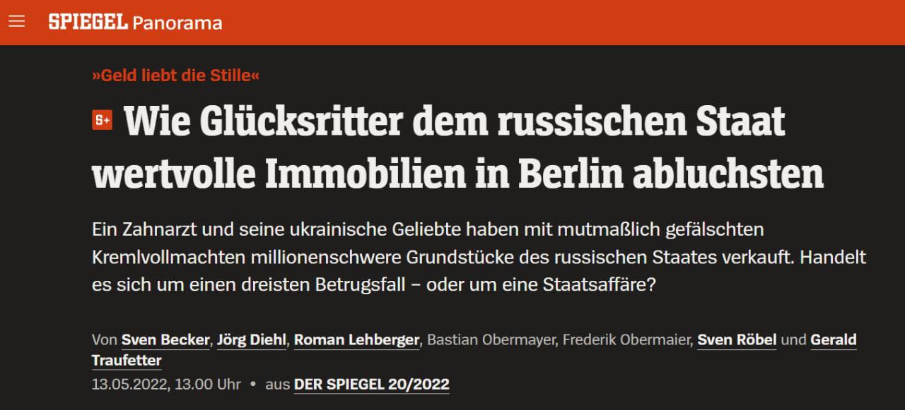 Берлинский стоматолог и его украинская подруга, используя поддельные документы, смогли продать в Берлине недвижимость, принадлежащую России, на миллионы евро.