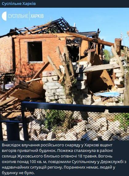 В Харькове этой ночью впервые за неделю был масштабный "прилет" с пожаром. Как выяснилось, в результате попадания российского снаряда дотла выгорел частный дом. Пожар вспыхнул в районе поселка Жуковского около полуночи 18 мая. Раненых нет, людей в доме не было, сообщили спасатели.