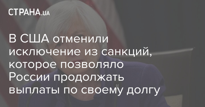 Министр финансов США Джанет Йеллен подтвердила информацию западных изданий о том, что США, скорее всего, отменят исключение из санкций, которое позволило России продолжать выплаты по своему долгу и избегать дефолта.