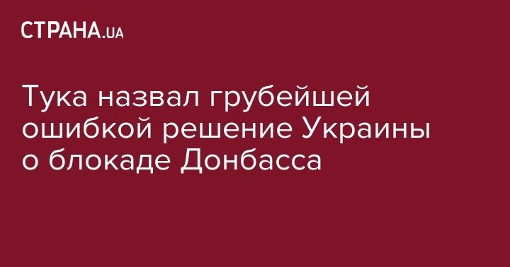 Заместитель министра по вопросам временно оккупированных территорий и внутренне-перемещенных лиц Георгий Тука заявил, что власти совершили грубейшую ошибку, создав блокаду Донбасса. Об этом он заявил в интервью порталу Укринформ.