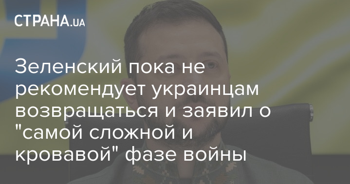 Зеленский пока не рекомендует украинцам возвращаться и заявил о "самой сложной и кровавой" фазе войны