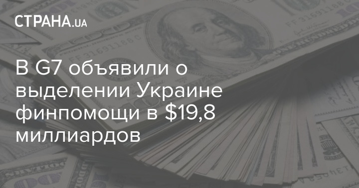 Страны G7 выделят Украине финансовую поддержку в 19,8 миллиардов долларов. Об этом говорится в совместном заявлении глав Минфинов стран G7, передает WsocTV.