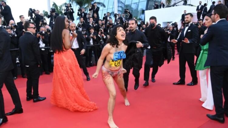 Активистка устроила протест на красной дорожке Каннского фестиваля. Фото: Из открытых источников