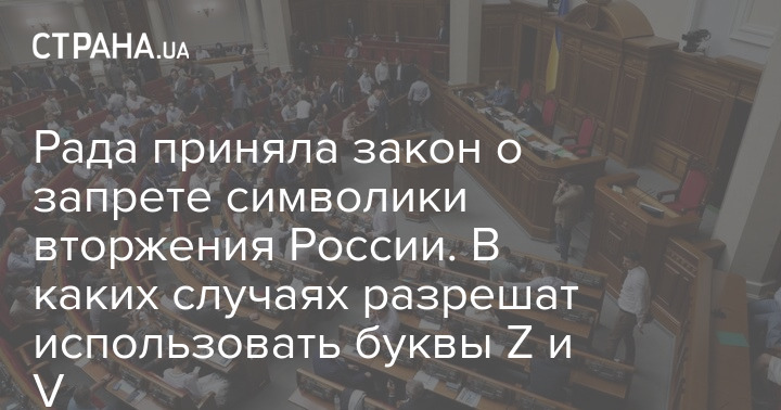 Закон о запрете символики военного вторжения в Украину Верховная Рада приняла с поправками президента. Благодаря этому, расширен круг случаев, когда символику Z и V не запрещается использовать в легитимных целях.