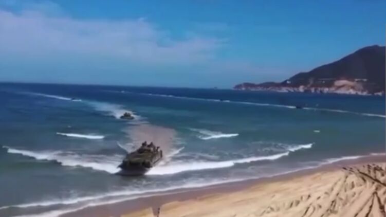 В Сети появилось видео военных учений Китая по отработке высадки на побережье.
