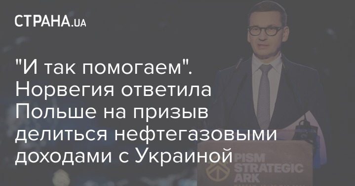 Норвегия ответила премьеру Польши Матеушу Моравецкому, который призвал страну делиться своими нефтегазовыми доходами с Украиной.