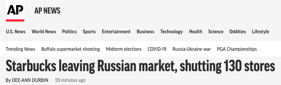 Американская корпорация Starbucks, владеющая крупнейшей в мире сетью кофеен, приняла решение ликвидировать бизнес в России.