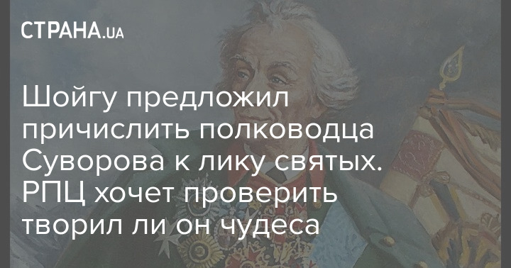 Министр обороны России Сергей Шойгу предложил причислить к лику святых русского полководца Александра Суворова. Русская православная церковь допускает такую возможность, но для этого нужны доказательства совершения Суворовым чудес.