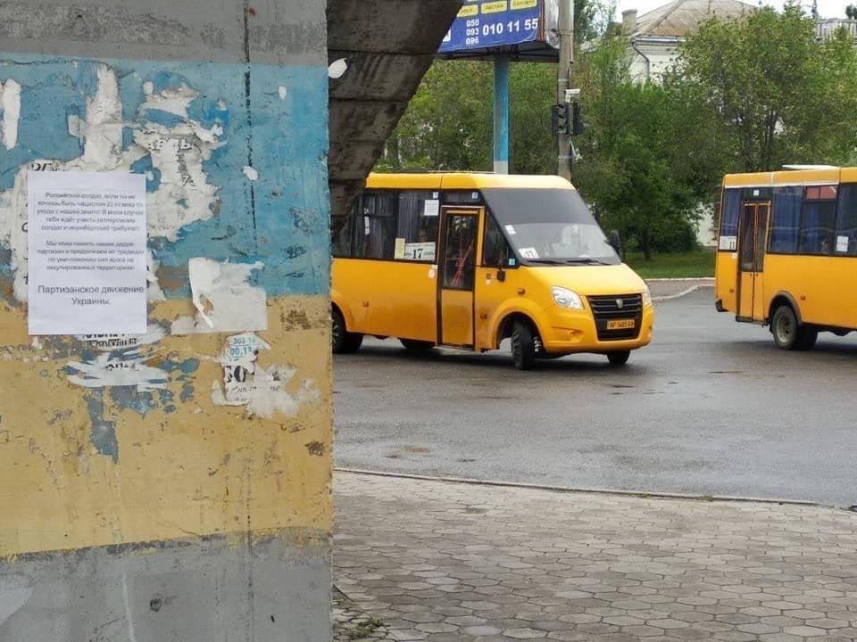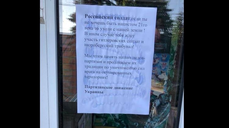 В Бердянске, Токмаке, Мелитополе, Великом Бурлуке и в ряду других неподконтрольных города украинские партизаны начали развешивать листовки, на которых обращаются к русским оккупантам с призывом покинуть нашу землю.