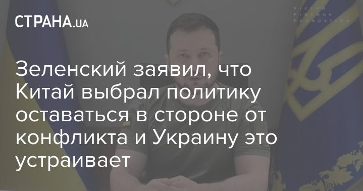 Зеленский заявил, что Китай выбрал политику оставаться в стороне от конфликта и Украину это устраивает
