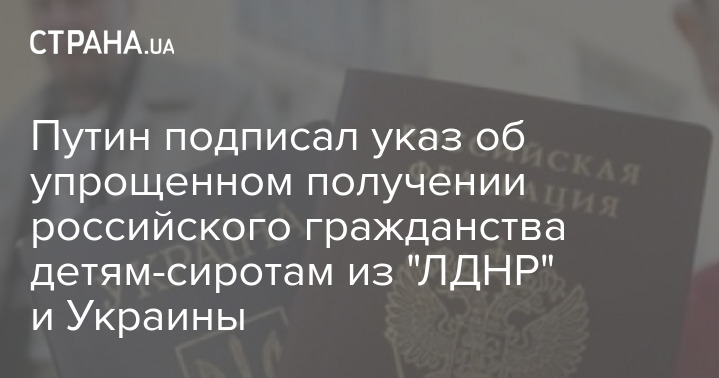 Путин подписал указ об упрощенном получении российского гражданства детям-сиротам из "ЛДНР" и Украины