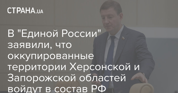 В "Единой России" заявляют, что оккупированные территории Херсонской и Запорожской областей Украины, для жителей которых уже упростили выдачу российских паспортов, войдут в состав РФ.