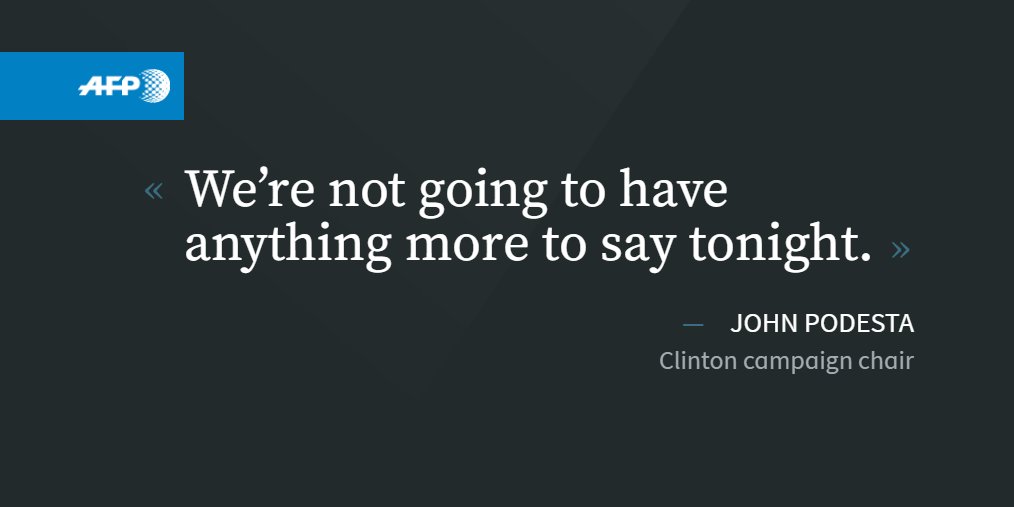Клинтон сказала, что она уважает и ценит мирный переход власти и  сообщила своим сторонникам, что они должны признать, что Трамп будет президентом. "Я надеюсь, он будет успешным президентом. Мне жаль, что мы не выиграли эти выборы. Но я чувствую гордость и благодарность за нашу кампанию", - сказала она.