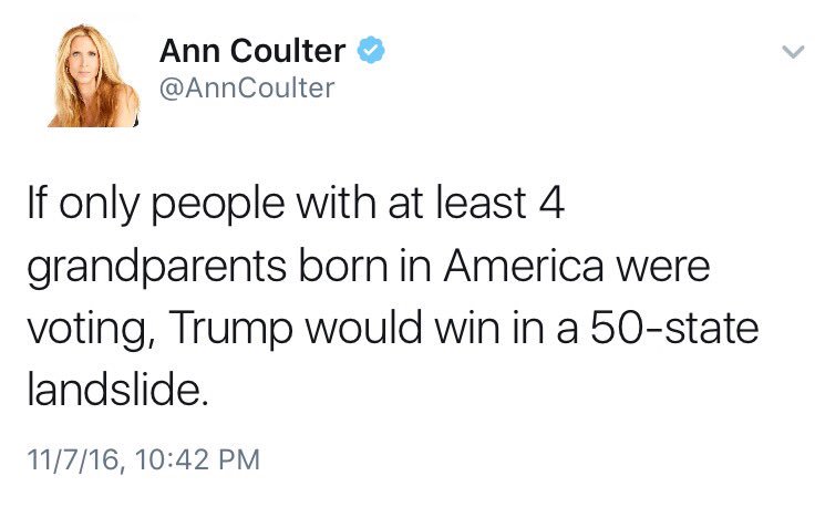 Пятый сценарий: сделать Америку снова великой. "Большая ночь" Трампа начинается в Нью Хемпшире, после продолжается в Вирджинии и Северной Каролине, проходит через Айову и Огайо, доходит до Флориды. Никто не может поверить в то, что Трамп победит в Пенсильвании, это значит, что афроамериканские избиратели Филадельфии остались дома. Трамп побеждает в Колорадо, возможно, проигрывает в Неваде и теряет восток, однако кого это печалит? У него уже более 300 голосов. Финальный итог: 308-230 в пользу Дональда Трампа.