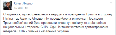 Министр внутренних дел Украины Арсен Аваков, после шквальной критики со стороны общественности и нардепов, вернул на свою страницу в социальной сети Facebook некомплиментарный пост о победителей выборов в США Дональде Трампе.