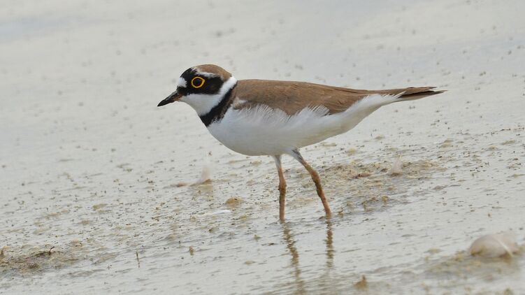 Чернобыльский радиационно-экологический биосферный заповедник рассказал о пернатом обитателе зоны отчуждения ЧАЭС, который селится близ воды. Это песочник малый или зуек малый.
