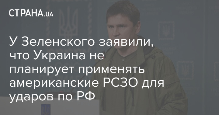 Советник главы ОП Михаил Подоляк заявил, что Украина не планирует применять ракетные системы залпового огня (РСЗО) для ударов по территории России.