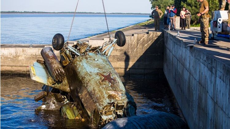 Со дна Киевского водохранилища подняли сбитый российский вертолет