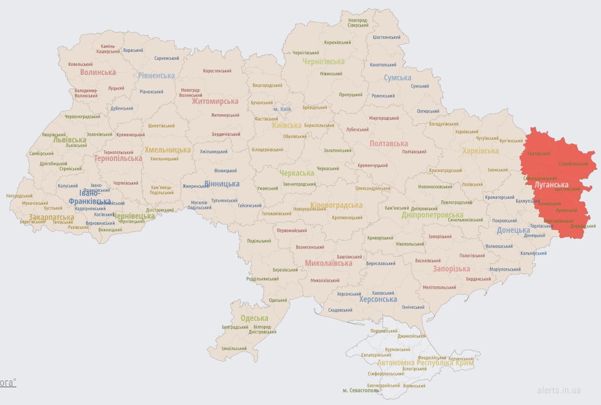 08:15 Воздушная тревога, которая час назад была в каждой области, осталась только на Луганщине.