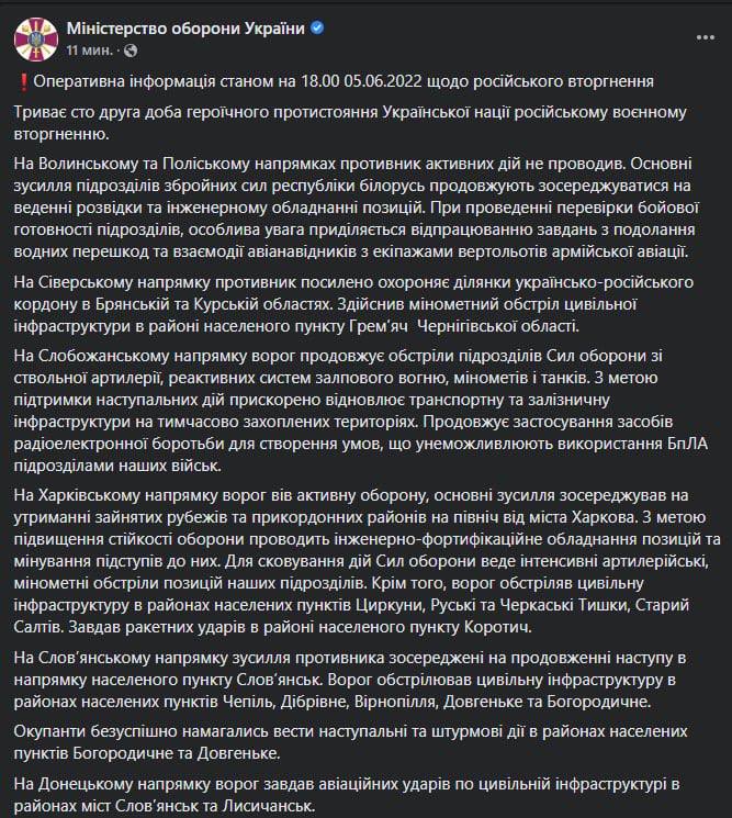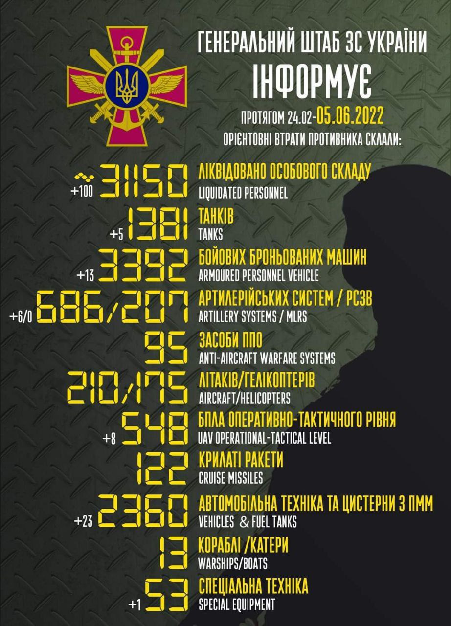 В воскресенье, 5 июня, в Украине идет уже 102-й день войны с Россией.