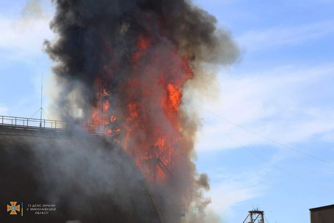 "2 ракеты сбиты противовоздушной обороной. С направления Черного моря и с территории России крылатыми ракетами воздушного базирования атаковано черноморское побережье Николаевщины, порты и зернохранилища", - заявляет командование.
