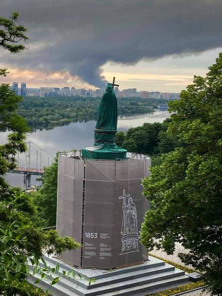 11:16 Последствия удара по Киеву - вид с Правого берега, с Владимирской горки. Автор фото - Сергей Вел (телеграм-канал Київ LIVE)