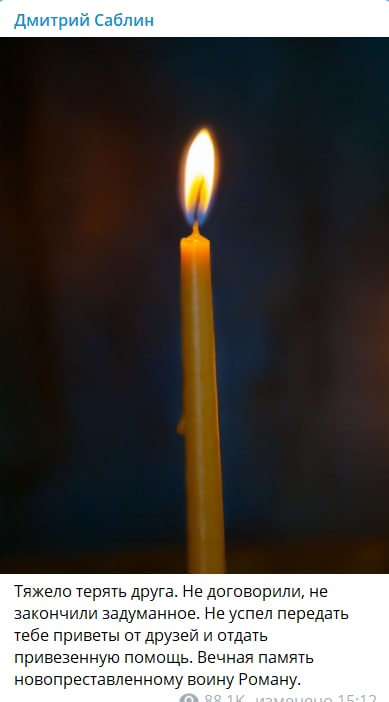 Погиб он в ходе боя в направлении трассы Бахмут-Лисичанск.