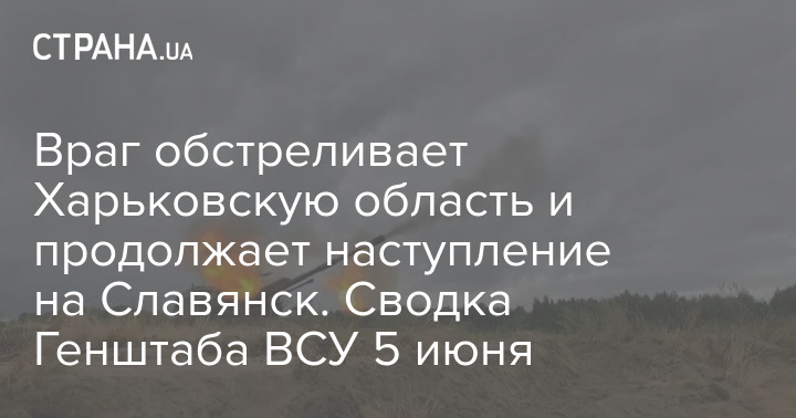 В Генеральном штабе Вооруженных сил Украины опубликовали оперативную сводку с фронта боевых действий по состоянию на 18:00 5 июня, в которой говорится, что российские войска продолжают наступление в направлении Славянска и ведут обстрелы населенных пунктов в Харьковской области.