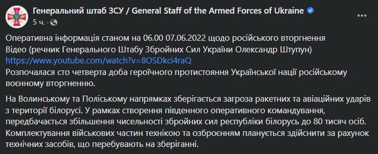 Беларусь "в рамках создания южного оперативного командования" (на границах Украины) увеличит численность войск до 80 тысяч человек.