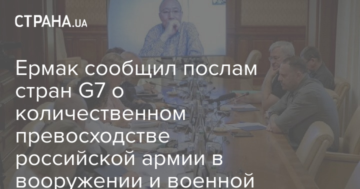 Глава Офиса президента Андрей Ермак на встрече с послами стран "Большой семерки" сообщил им о количественном превосходстве российской армии в вооружении и военной технике.