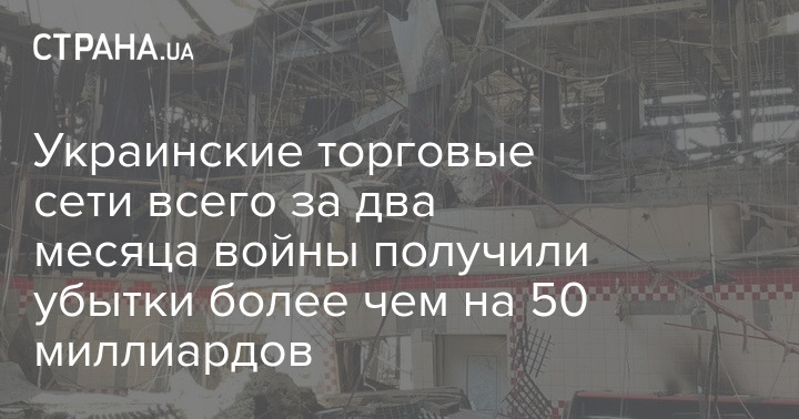 Общий объем прямых убытков украинских торговых сетей из-за войны в период с 24 февраля по 23 апреля оценивается в 50,7 миллиарда гривен, без учета упущенной выгоды. В пересчете на 1 квадратный метр поврежденных торговых точек это 30 475 гривен, или 17,4 миллиона гривен в среднем на один поврежденный магазин.