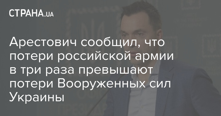 Советник главы ОП Алексей Арестович в эфире "Фейгин Live" высказал мнение, что потери Украины в три раза меньше российских и что пропорция 1:3 будет сохраняться.