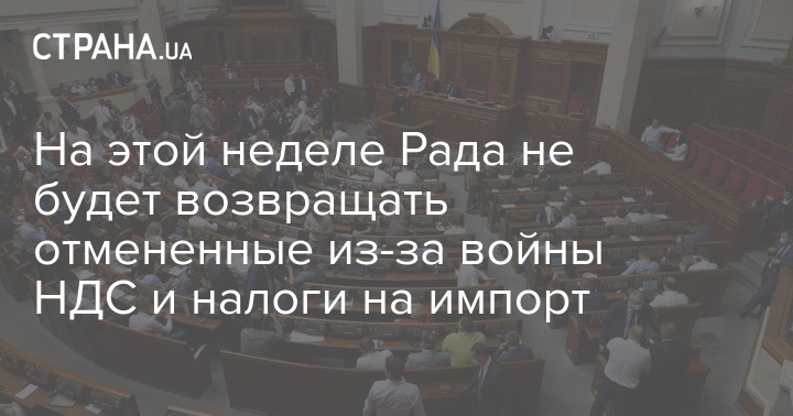 На текущей неделе Верховная Рада не будет возвращать НДС и налоги на импорт, которые были отменили в начале войны.