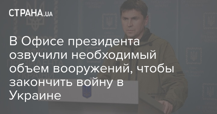 Советник главы ОП Михаил Подоляк назвал объем вооружений, который нужен от Запада, чтобы закончить войну.