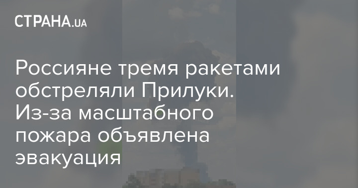 По Прилукам Черниговской области нанесен ракетный удар. В соседних селах объявили эвакуацию из-за масштабного пожара.