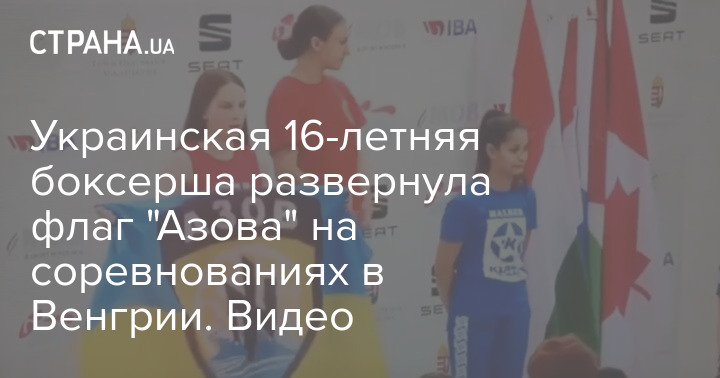 Украинская спортсменка подняла флаг Азова на турнире по боксу в Венгрии. Скриншот из видео