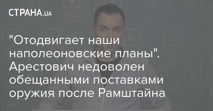 "Отодвигает наши наполеоновские планы". Арестович недоволен обещанными поставками оружия после Рамштайна