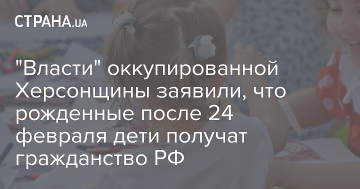 Назначенный Россией "замглавы администрации" Херсонской области Кирилл Стремоусов заявил, что все дети в регионе, рождённые после 24 февраля, будут автоматически получать гражданство РФ.